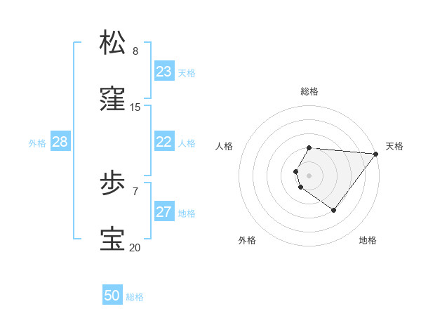 松窪 歩宝さんを姓名の画数から五運を鑑定