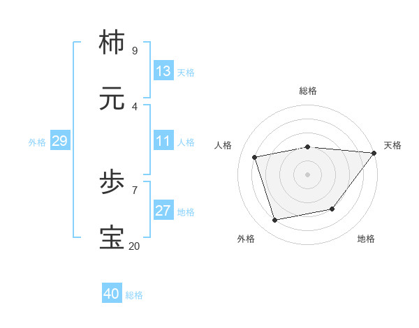 柿元 歩宝さんを姓名の画数から五運を鑑定