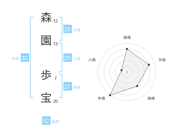 森園 歩宝さんの総格は52画の4点!