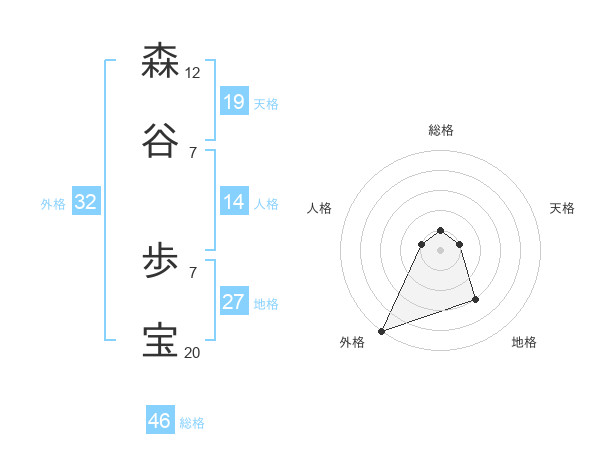 森谷 歩宝さんを姓名の画数から五運を鑑定