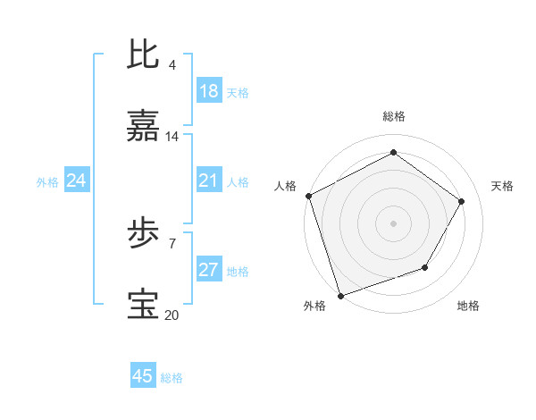 比嘉 歩宝さんの総格は45画の4点!