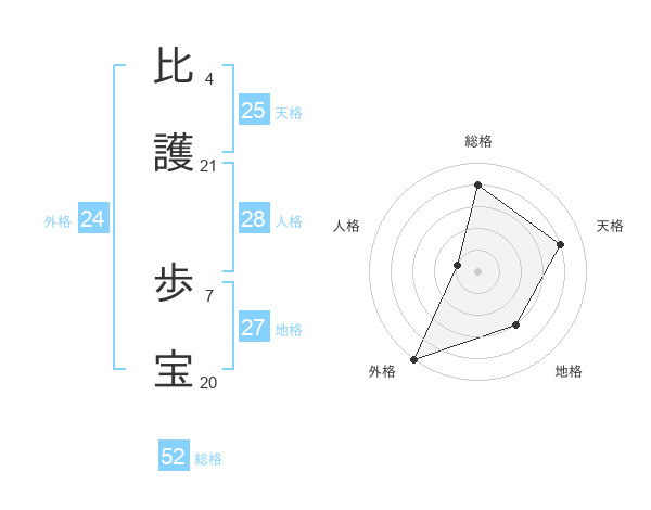 比護 歩宝さんを姓名の画数から五運を鑑定