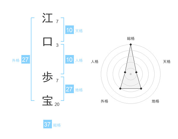 江口 歩宝さんの総格は37画の5点!