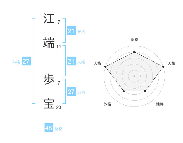 江端 歩宝さんの天格は21画の5点!