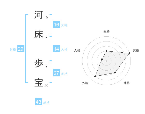河床 歩宝さんの天格は16画の5点!