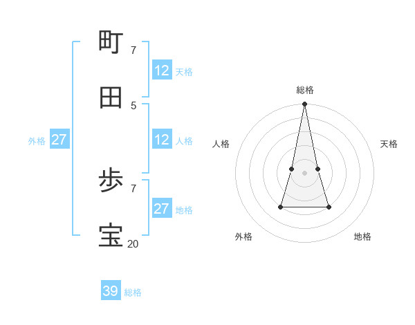 町田 歩宝さんを姓名の画数から五運を鑑定