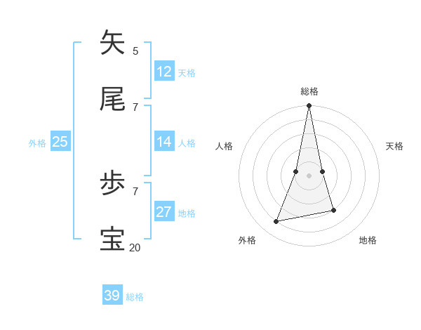 矢尾 歩宝さんを姓名の画数から五運を鑑定