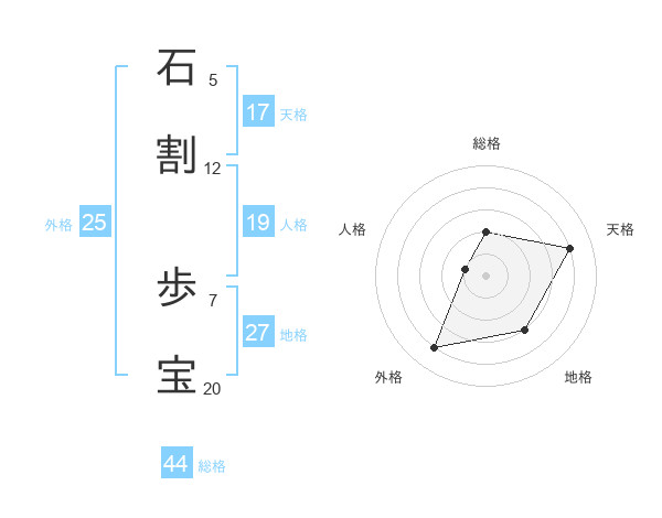 石割 歩宝さんを姓名の画数から五運を鑑定