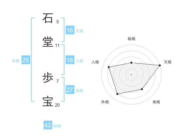 石堂 歩宝さんの天格は16画の5点!
