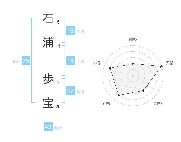 石浦 歩宝さんの総格は43画の2点!