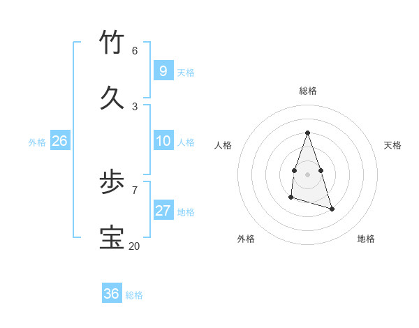 竹久 歩宝さんを姓名の画数から五運を鑑定