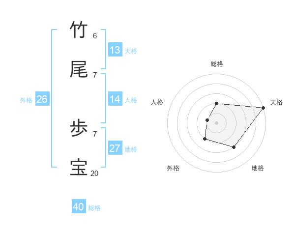竹尾 歩宝さんの外格は26画の2点!