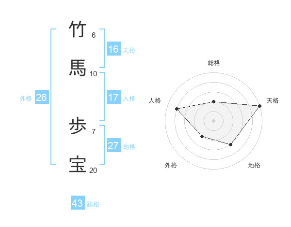 竹馬 歩宝さんの総格は43画の2点!