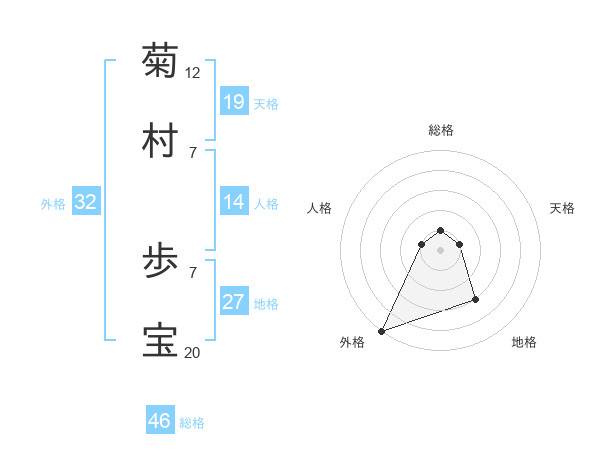 菊村 歩宝さんを姓名の画数から五運を鑑定