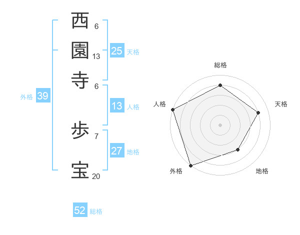 西園寺 歩宝さんの総格は52画の4点!