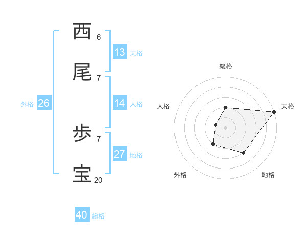 西尾 歩宝さんを姓名の画数から五運を鑑定