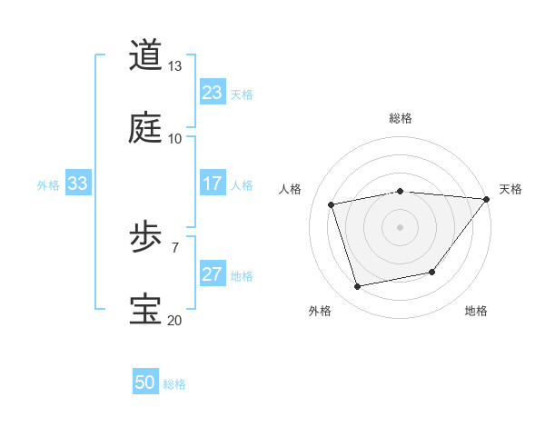 道庭 歩宝さんを姓名の画数から五運を鑑定