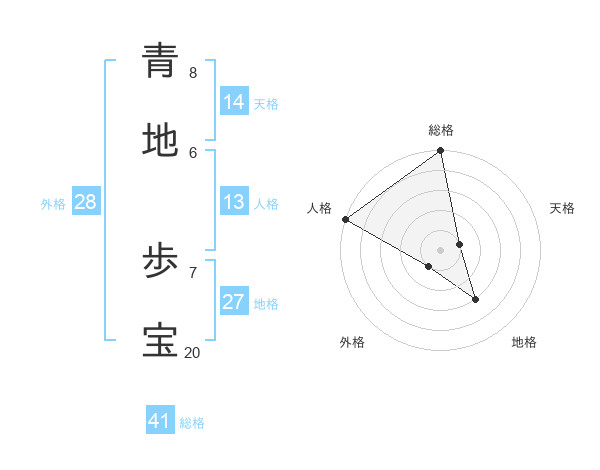 青地 歩宝さんを姓名の画数から五運を鑑定