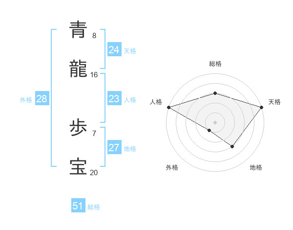 青龍 歩宝さんの総格は51画の3点!