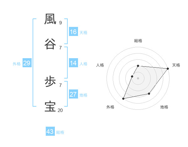 風谷 歩宝さんを姓名の画数から五運を鑑定
