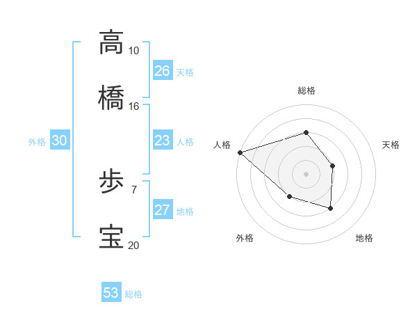 高橋 歩宝さんの総格は53画の3点!
