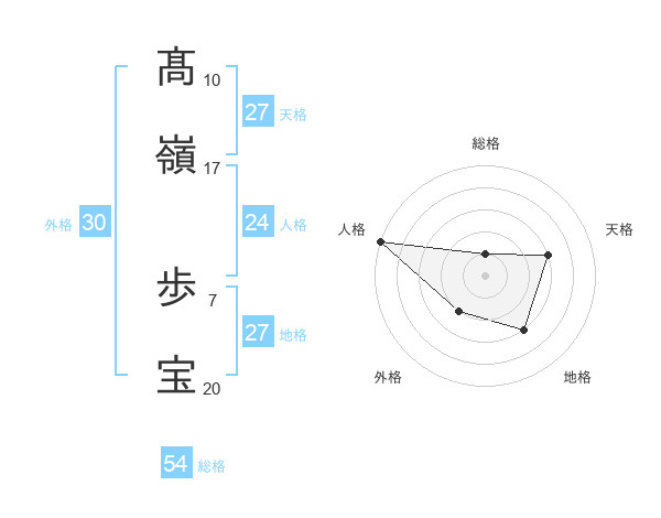 髙嶺 歩宝さんの総格は54画の1点!