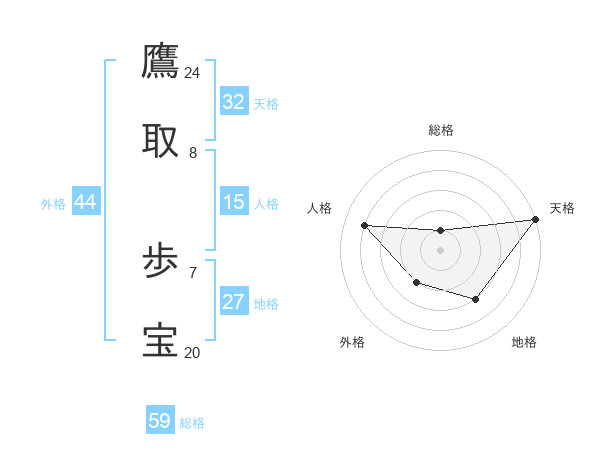 鷹取 歩宝さんを姓名の画数から五運を鑑定