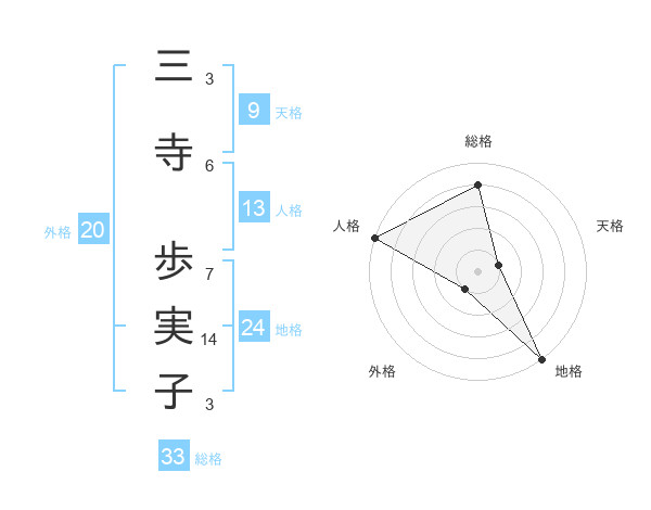 三寺 歩実子さんを姓名の画数から五運を鑑定