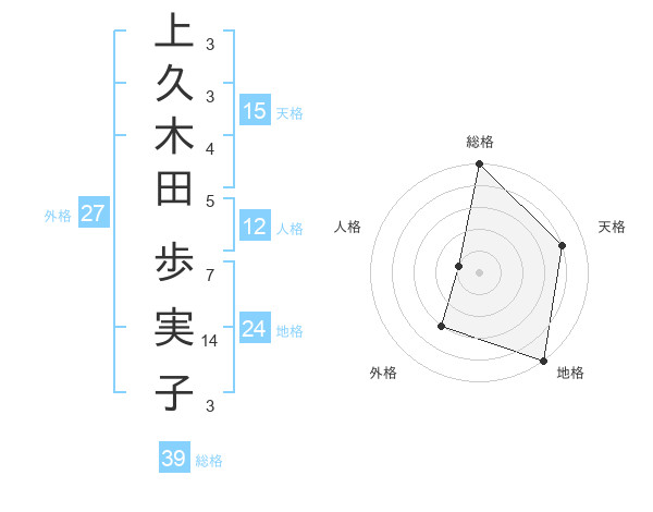 上久木田 歩実子さんを姓名の画数から五運を鑑定