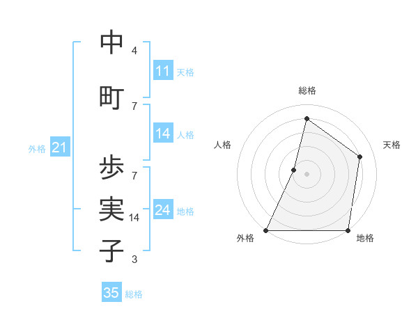 中町 歩実子さんの天格は11画の4点!