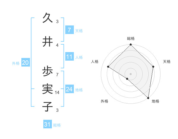 久井 歩実子さんを姓名の画数から五運を鑑定