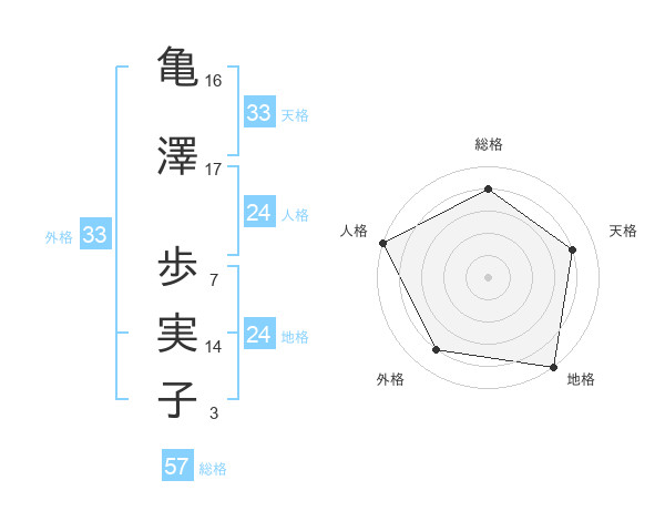 亀澤 歩実子さんを姓名の画数から五運を鑑定