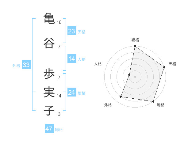 亀谷 歩実子さんの総格は47画の5点!