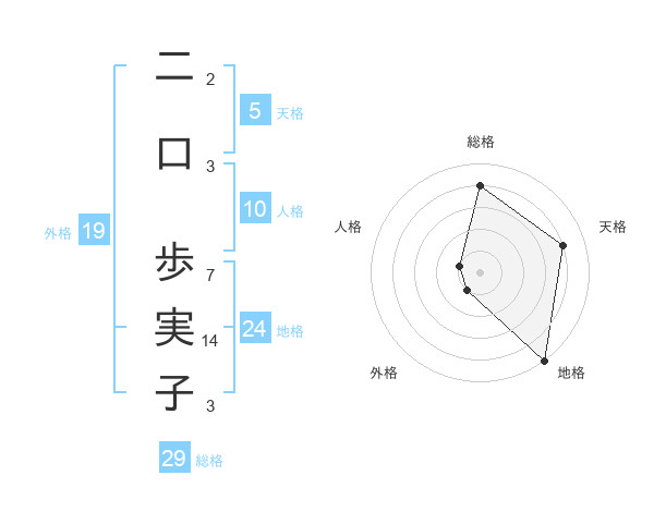 二口 歩実子さんの総格は29画の4点!
