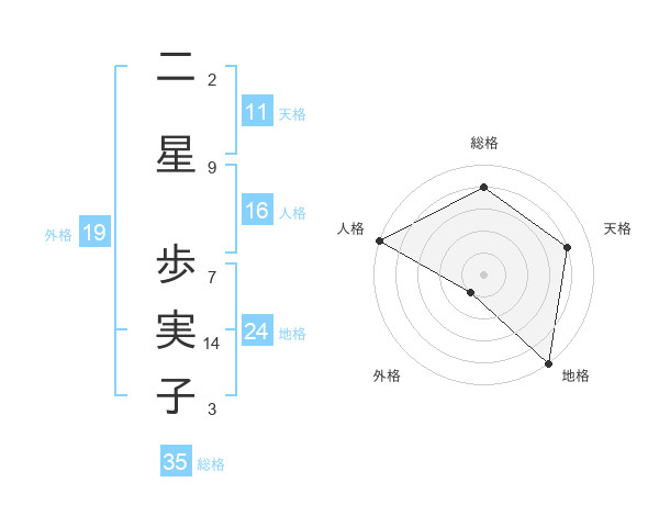 二星 歩実子さんを姓名の画数から五運を鑑定