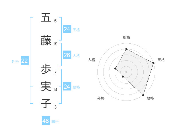五藤 歩実子さんの地格は24画の5点!