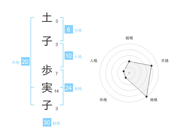 土子 歩実子さんを姓名の画数から五運を鑑定