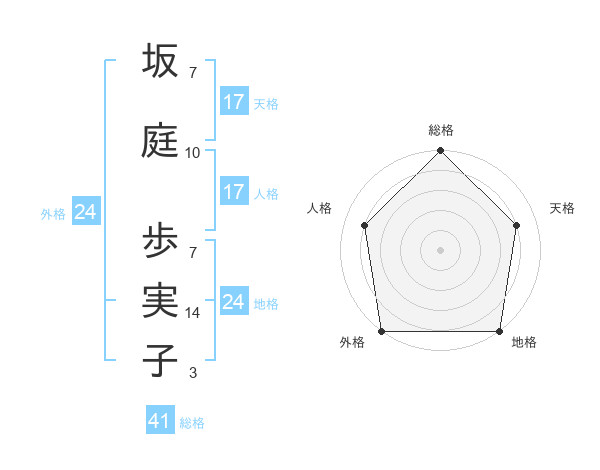 坂庭 歩実子さんの天格は17画の4点!