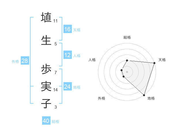 埴生 歩実子さんの天格は16画の5点!