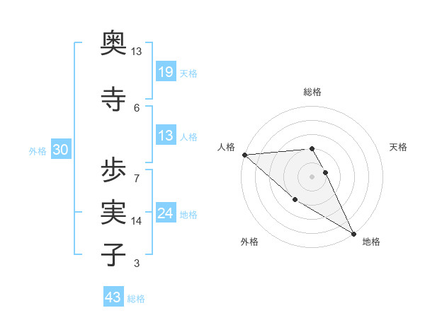 奥寺 歩実子さんの天格は19画の1点!