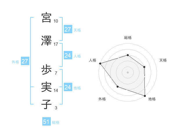 宮澤 歩実子さんを姓名の画数から五運を鑑定