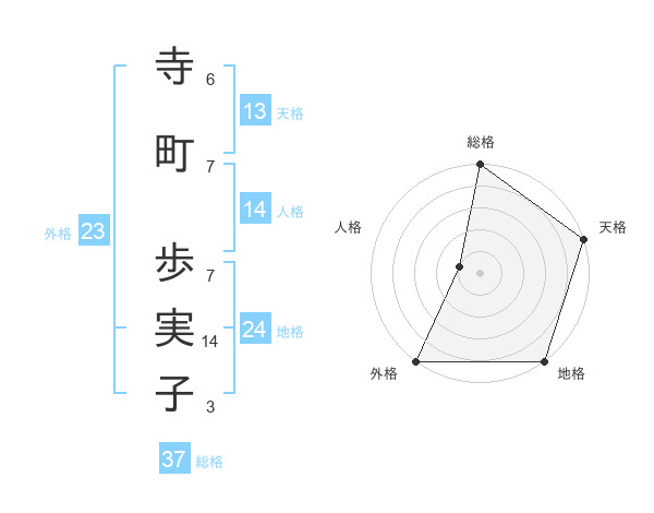 寺町 歩実子さんの総格は37画の5点!