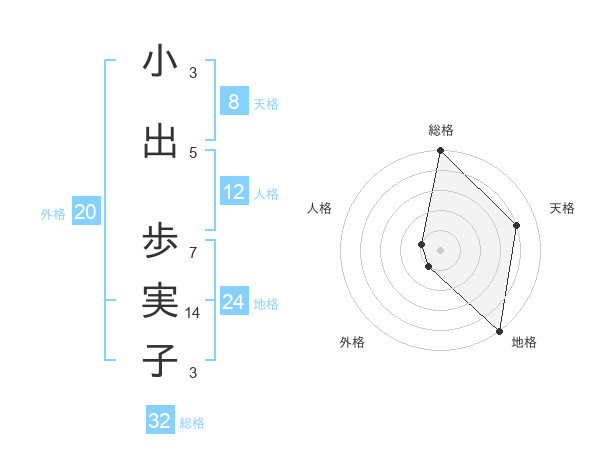 小出 歩実子さんの天格は8画の4点!