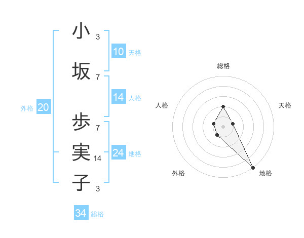 小坂 歩実子さんの総格は34画の2点!