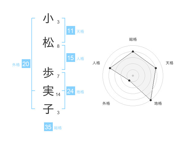 小松 歩実子さんを姓名の画数から五運を鑑定