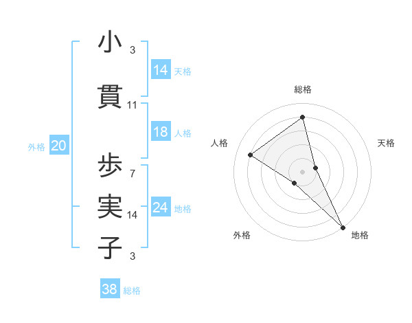 小貫 歩実子さんの総格は38画の4点!