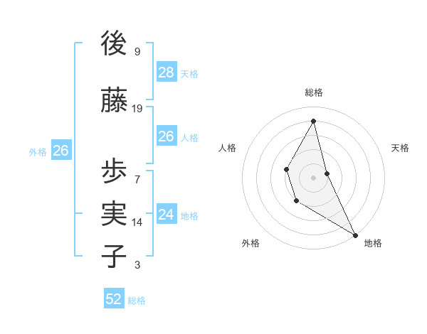 後藤 歩実子さんを姓名の画数から五運を鑑定