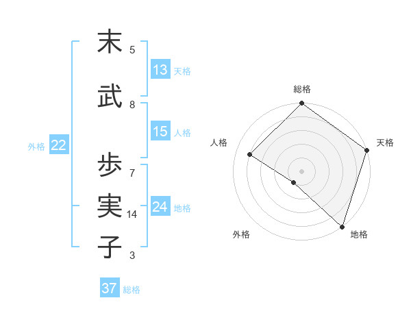 末武 歩実子さんを姓名の画数から五運を鑑定