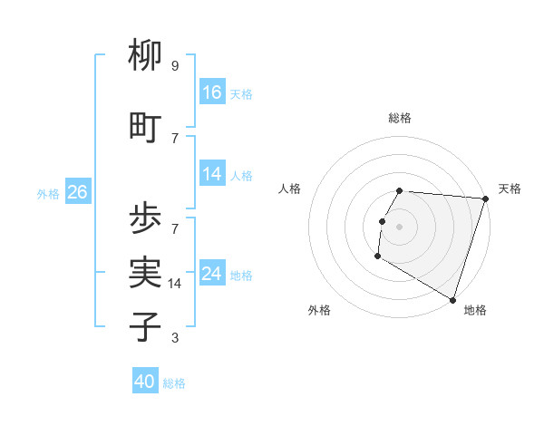 柳町 歩実子さんを姓名の画数から五運を鑑定