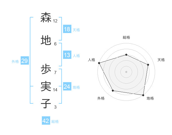 森地 歩実子さんを姓名の画数から五運を鑑定